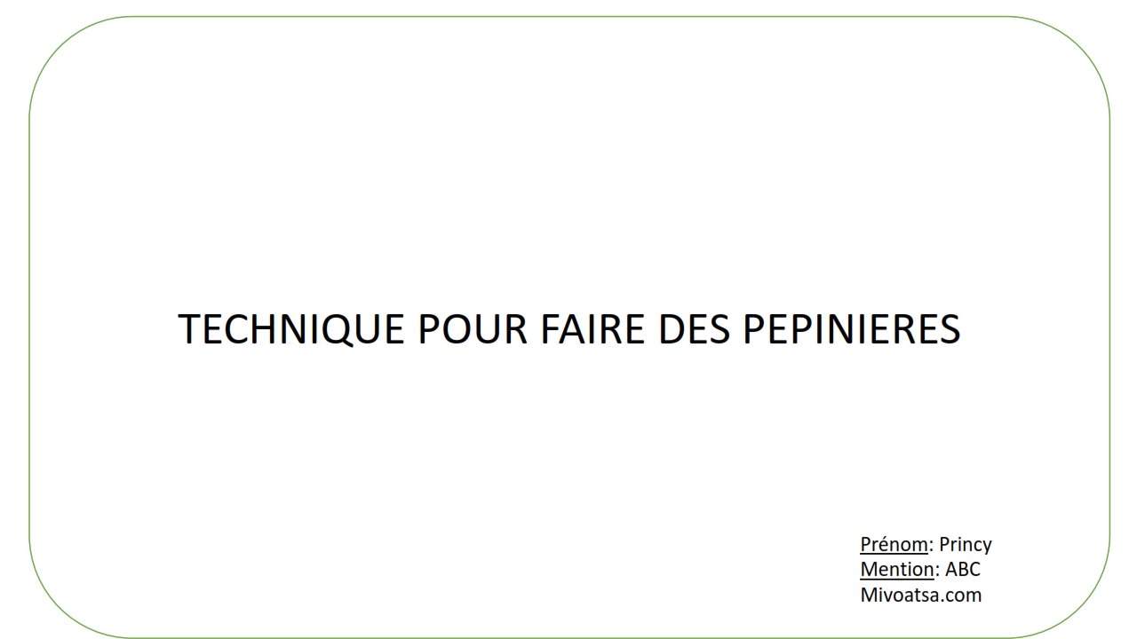 Techniques pour faire une pépinièrePar admin / 13/06/2024 Télécharger la présentation ici: tecnique pepiniere Auteur: RAMAHOLISON NOMENA VICTORIO PRINCY