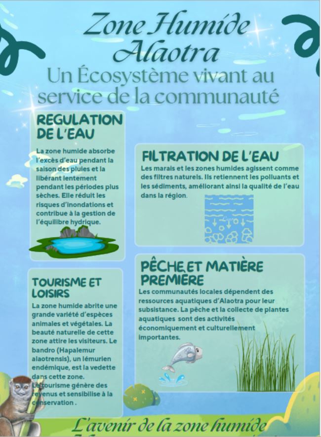 Ce poster expose la zone humide Alaotra, un écosystème vivant au service de la communauté.